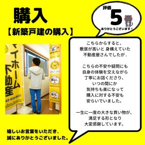 5.0不動産売却 住み替え 第一印象:大変良好です。 雰囲気:知的で優しい 接客態度:優良です。 最終的に買取りだったが、契約後も荷物の事、こちらの体調の心配など大変親切にしてもらいました。他大手さんに頼んでいたが、こんなに信頼できた担当さんはいなかった。早くマイホーム不動産に来れば良かったです。(聞き取りより)