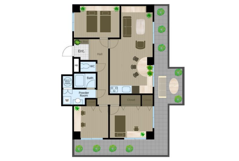 2025年12月 間取りの家具配置で、お洒落な暮らしをイメージしやすい! *実際の間取り図面は二つ掲載します。こちらは「家具を配置した間取り図面」になります。(*専任媒介の方のみのサービスになります)「東南角部屋」「広いバルコニー」がとても魅力的なマンションですから、それをうたわないなんてあり得ません! マンション購入希望者の方は、お洒落なイメージが好きな方が特に多いので、「間取り図をただ出しただけ」では、一覧で見た時にスルーされてしまう可能性が高くなります。お洒落な雰囲気を入れつつ他の物件にはない魅力を最大限アピールする事が、早期売却には欠かせません。 元の間取り画像 のままでも大丈夫なのですが、マイホーム不動産では「ただの間取り図」だけで終わらせ 間取り図の別パターン 取り図に家具を配置する時には「数パターンの魅力的な配置」を考えます。そこから絞っ « 前の記事へ 次の記事へ » 各種別一覧 - 広告写真事例 一戸建て広告事例 マンション広告事例 土地広告事例