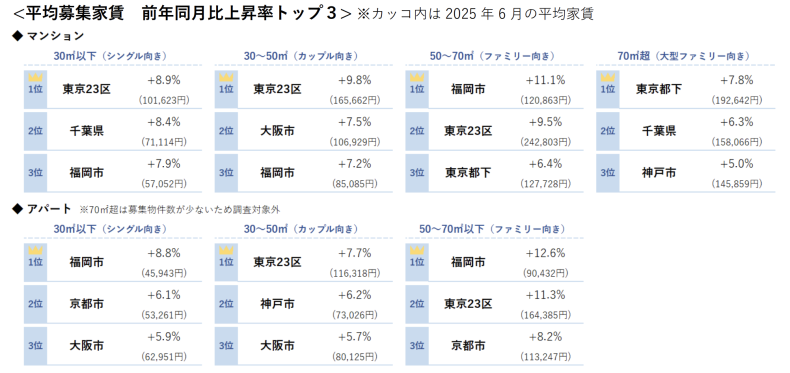 新築マンション価格は、地価や建材、人件費の上昇などから大幅に高騰しています。2025年7月の首都圏新築マンション平均価格は1億円超。新築戸建ても、急速な性能向上や法改正などもあって価格が高騰しています。また、上がりづらいとされてきた賃貸住宅の家賃も、ここに来て大幅に上昇しています。