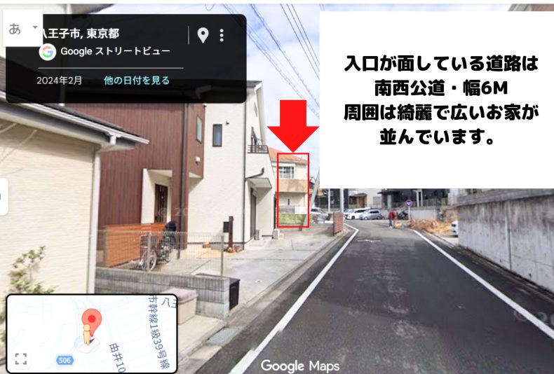 4. 南北両面道路の圧倒的な解放感と、車3台のゆとり