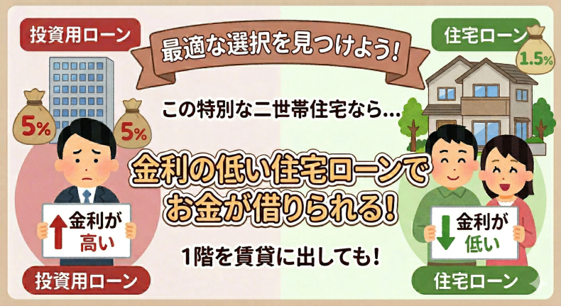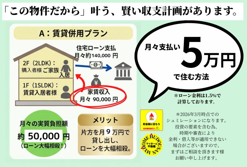 不動産投資の最大の壁は「ローンへの恐怖」です。しかし、この物件は「自分が住みながら投資する(賃貸併用)」ことで、そのリスクを最小限に抑えられます。